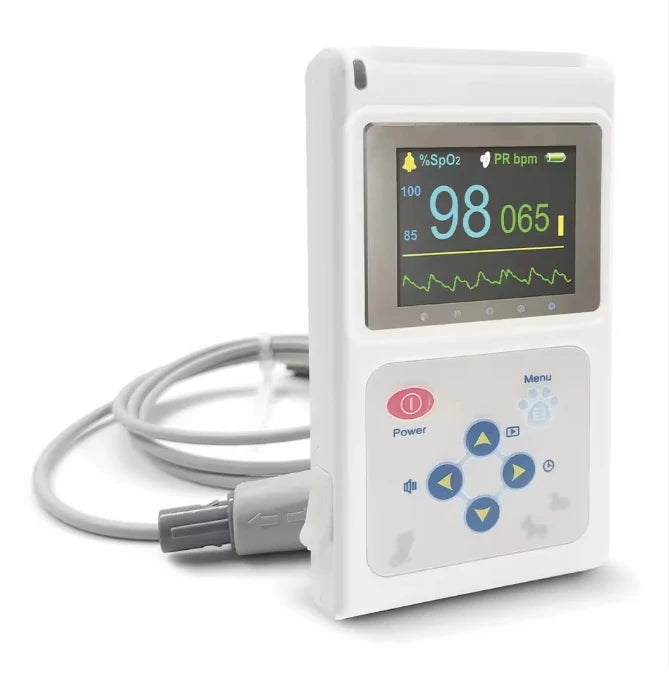 🐶 Sauerstoffsättigung (SpO₂) und Herzfrequenz messen 🐱 Geeignet für Hunde, Katzen und andere Tiere 🖥️ 1,77-Zoll-Farbdisplay mit klarer Anzeige ⚡ Kompaktes und leichtes Handdesign 🏥 Ideal für Tierkliniken und die veterinärmedizinische Diagnostik 🔬 Präzise Messung mit einer Genauigkeit von ±2 bpm / ±2%